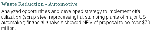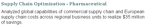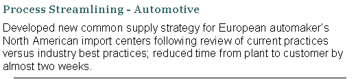 Re-evaluated “single hub + spoke” distribution model for Federal Express following purchase of ground based delivery company, enabling five-fold capacity increase and generating savings of over US$10 Million per year. |